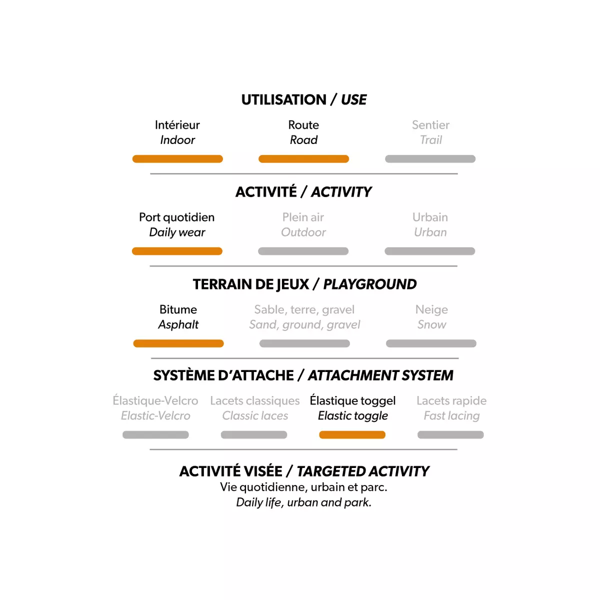 – Lacets élastiques avec bouton arrêt à pression;